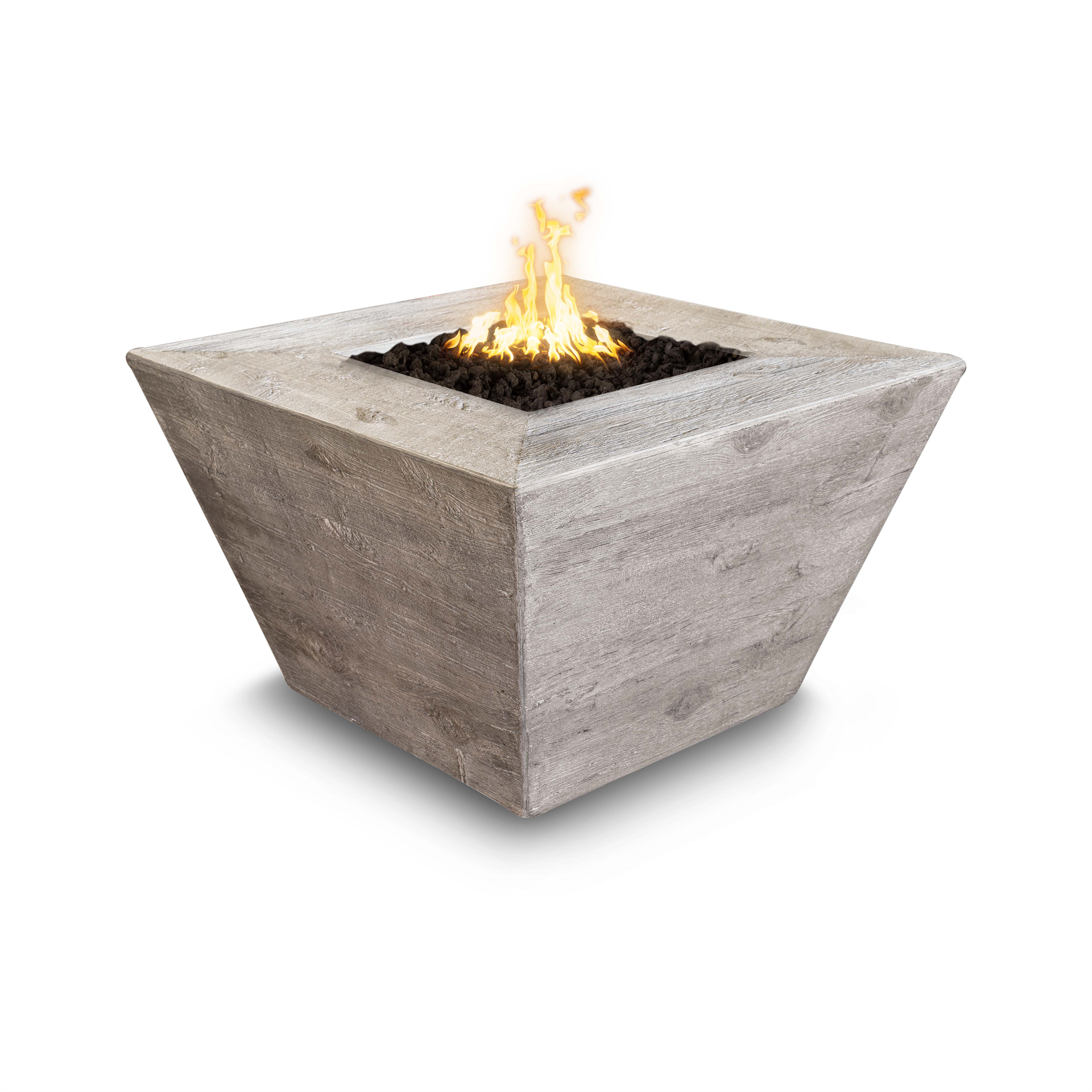 The Square Plymouth Wood Grain Fire Pit by The Outdoor Plus combines rustic charm with modern craftsmanship, bringing the natural beauty of wood grain textures to a durable, outdoor-ready design. Handcrafted in the USA, this fire pit features a clean, square silhouette with a realistic wood-grain finish that adds warmth and character to any patio or backyard space. Constructed from premium, weather-resistant materials, it is built for lasting performance and year-round enjoyment. With customizable sizes and fuel options, the Square Plymouth Wood Grain Fire Pit delivers inviting warmth, timeless style, and a cozy, wood-inspired aesthetic to elevate your outdoor living experience.