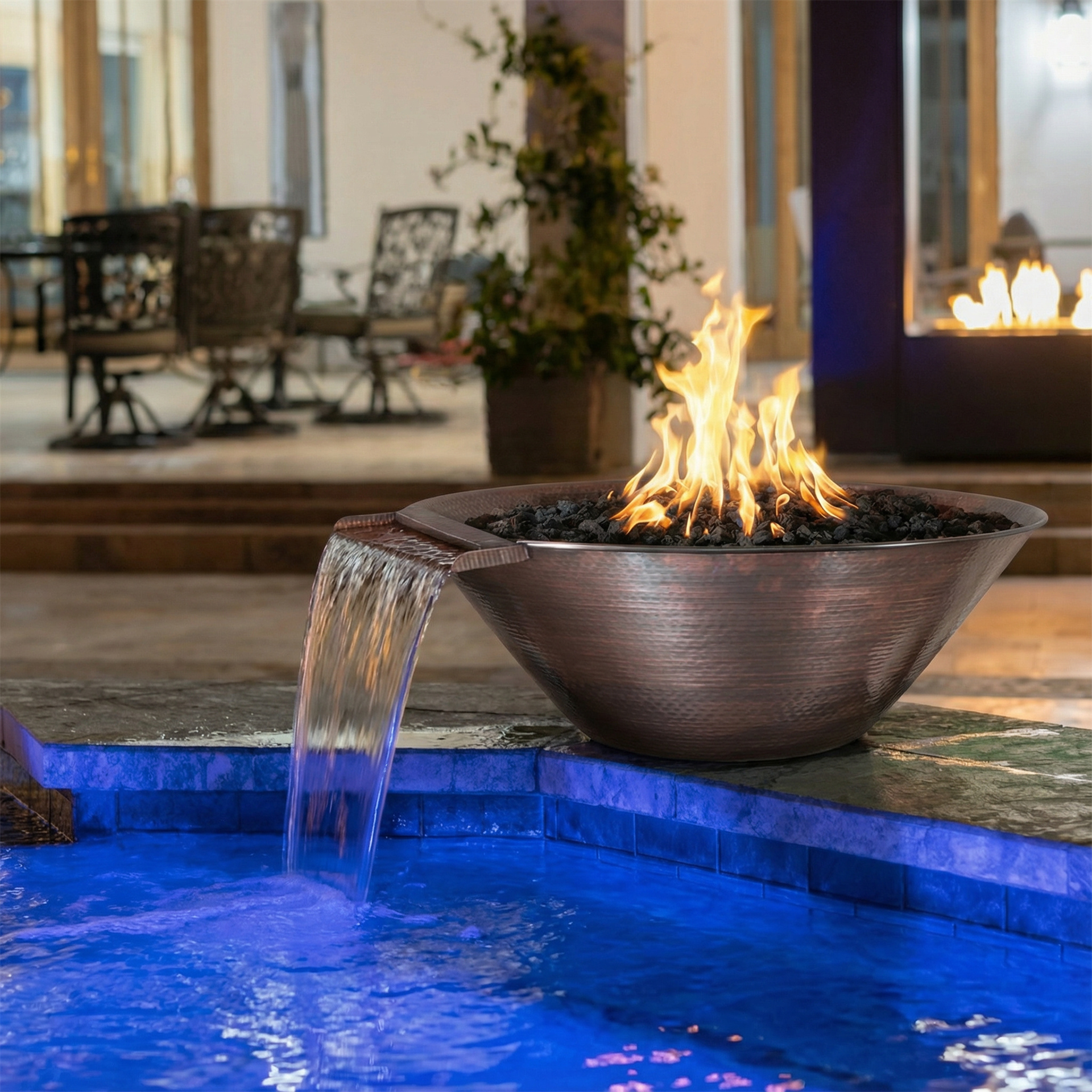 Remi Fire & Water Bowl - 31" - Match Lit - Hammered Copper - Liquid Propane - w/ Key Valve