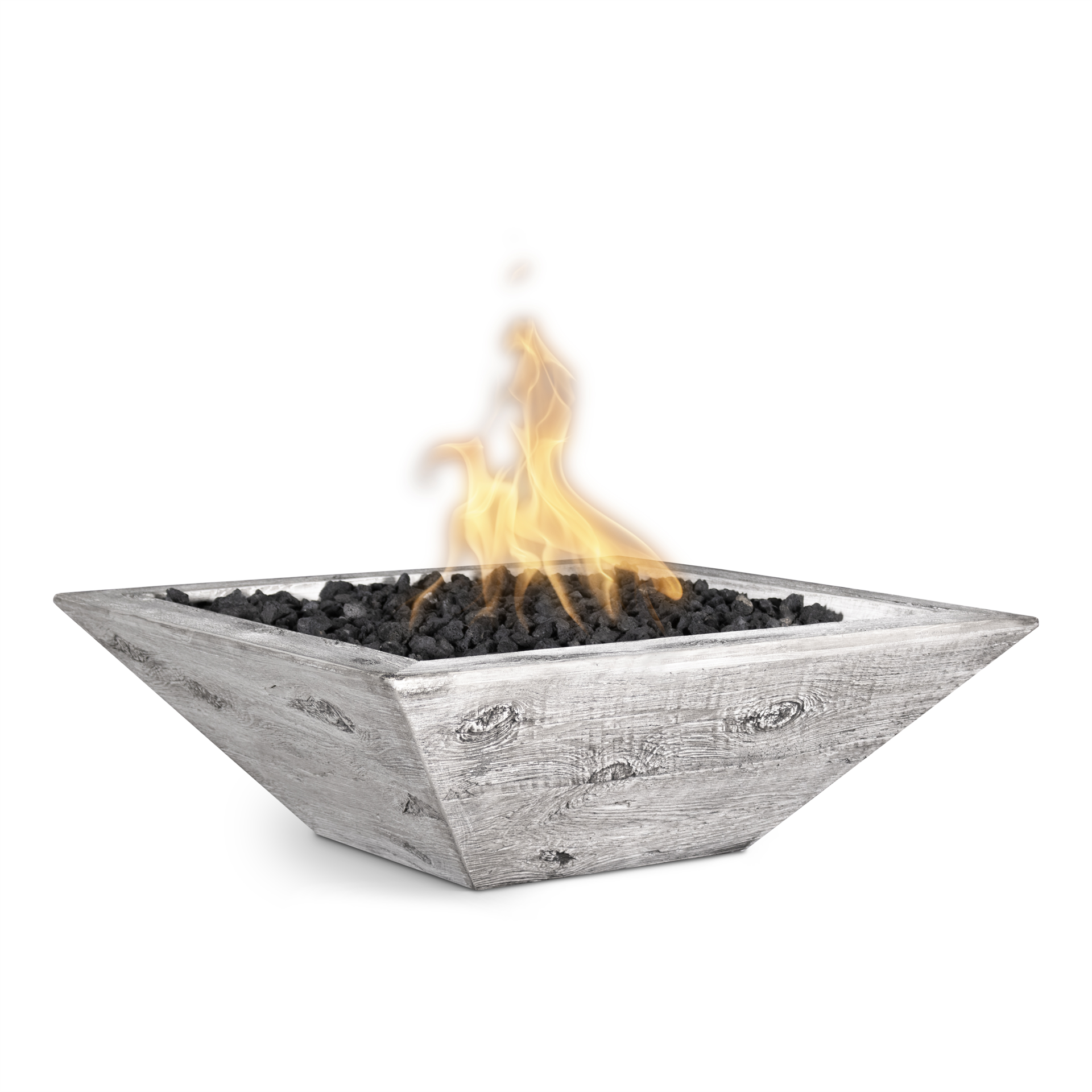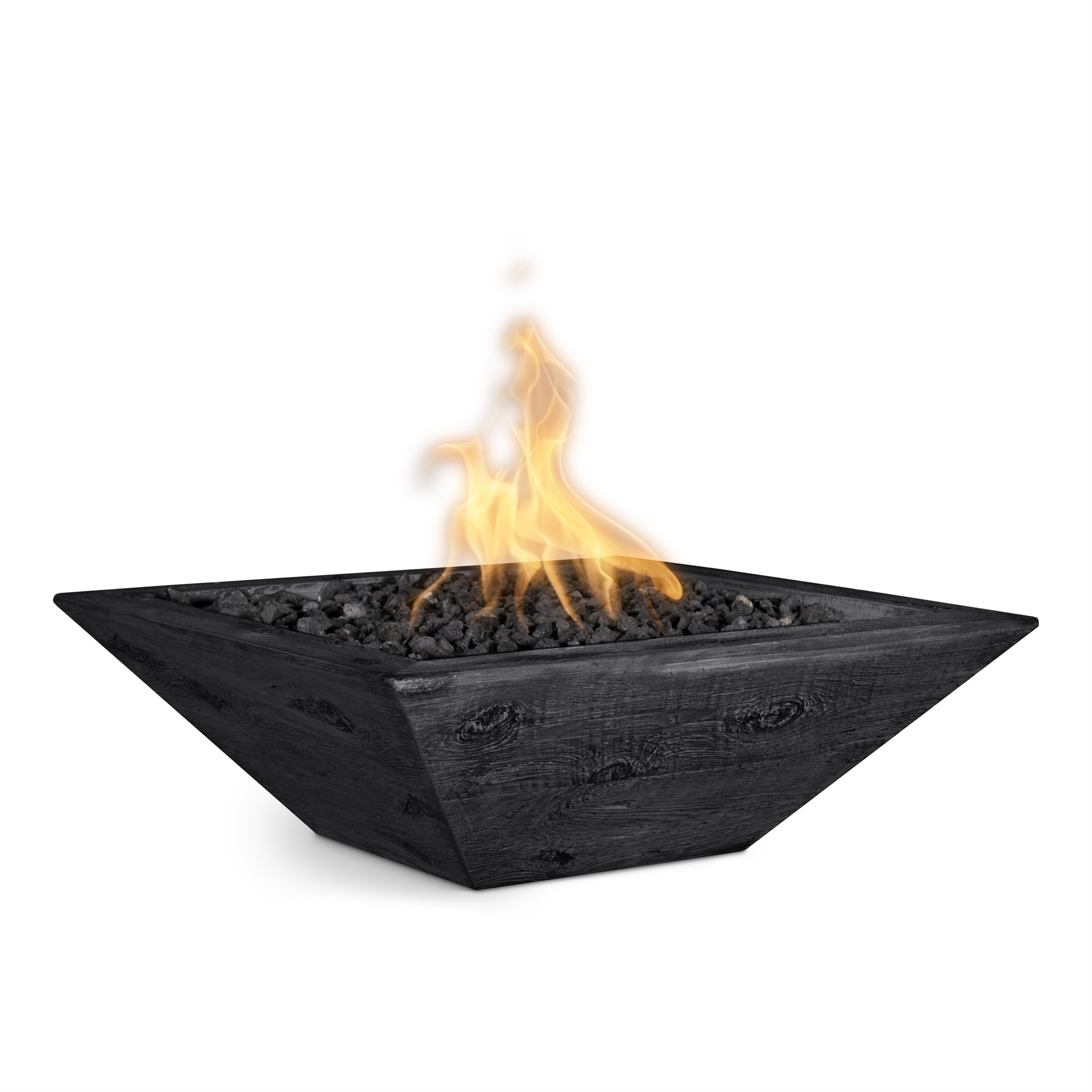Maya Fire Bowl (GFRC Wood Grain) - 24" - Match Lit - Ebony - Liquid Propane - w/ Key Valve